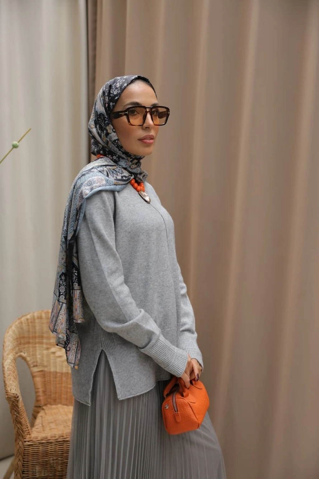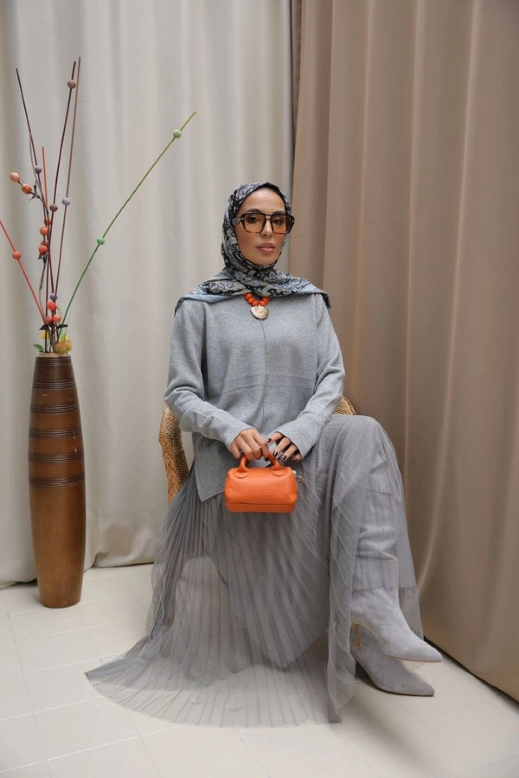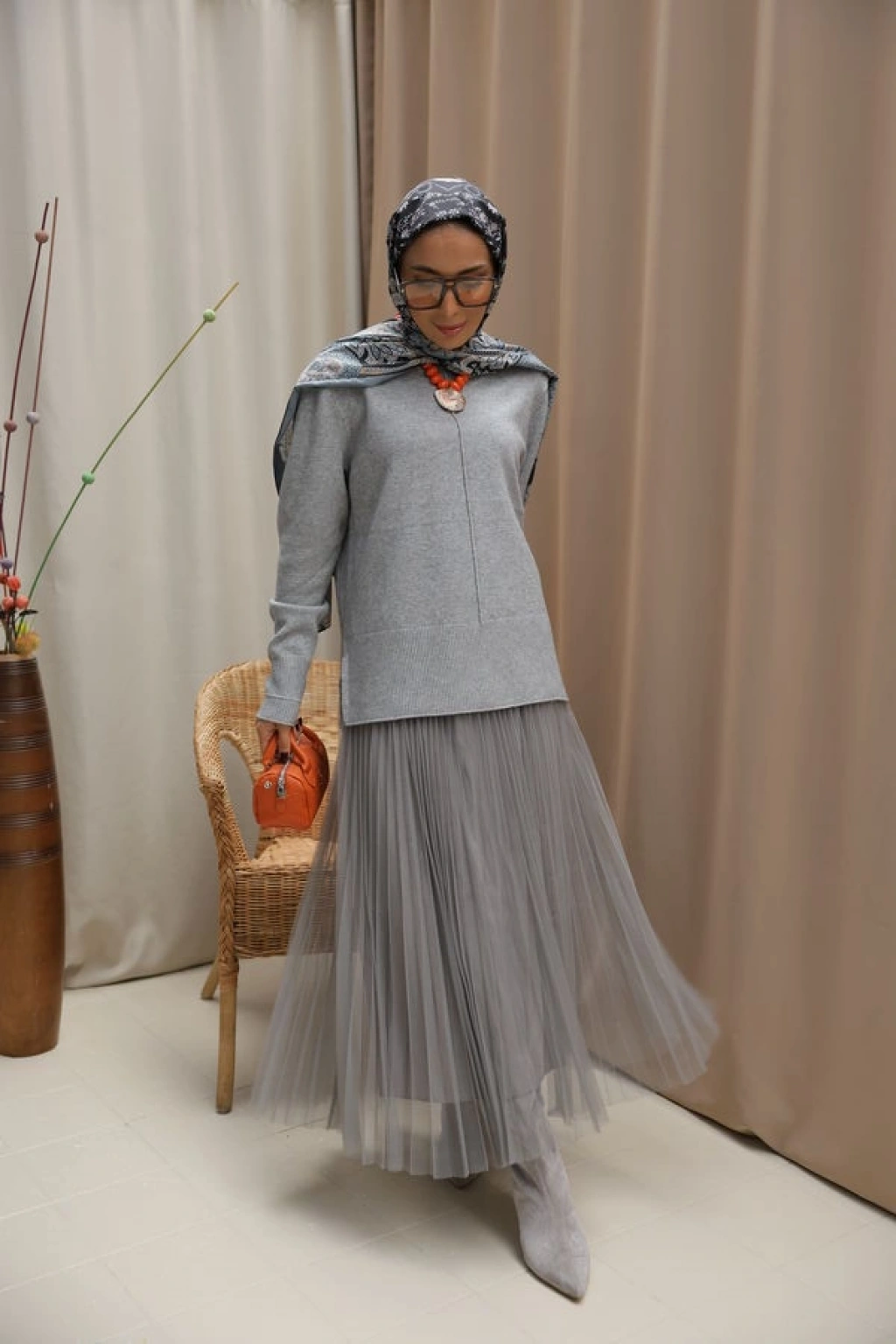 Kadın Pileli Zarafet Takım-Gri