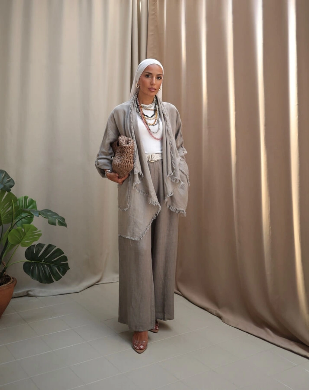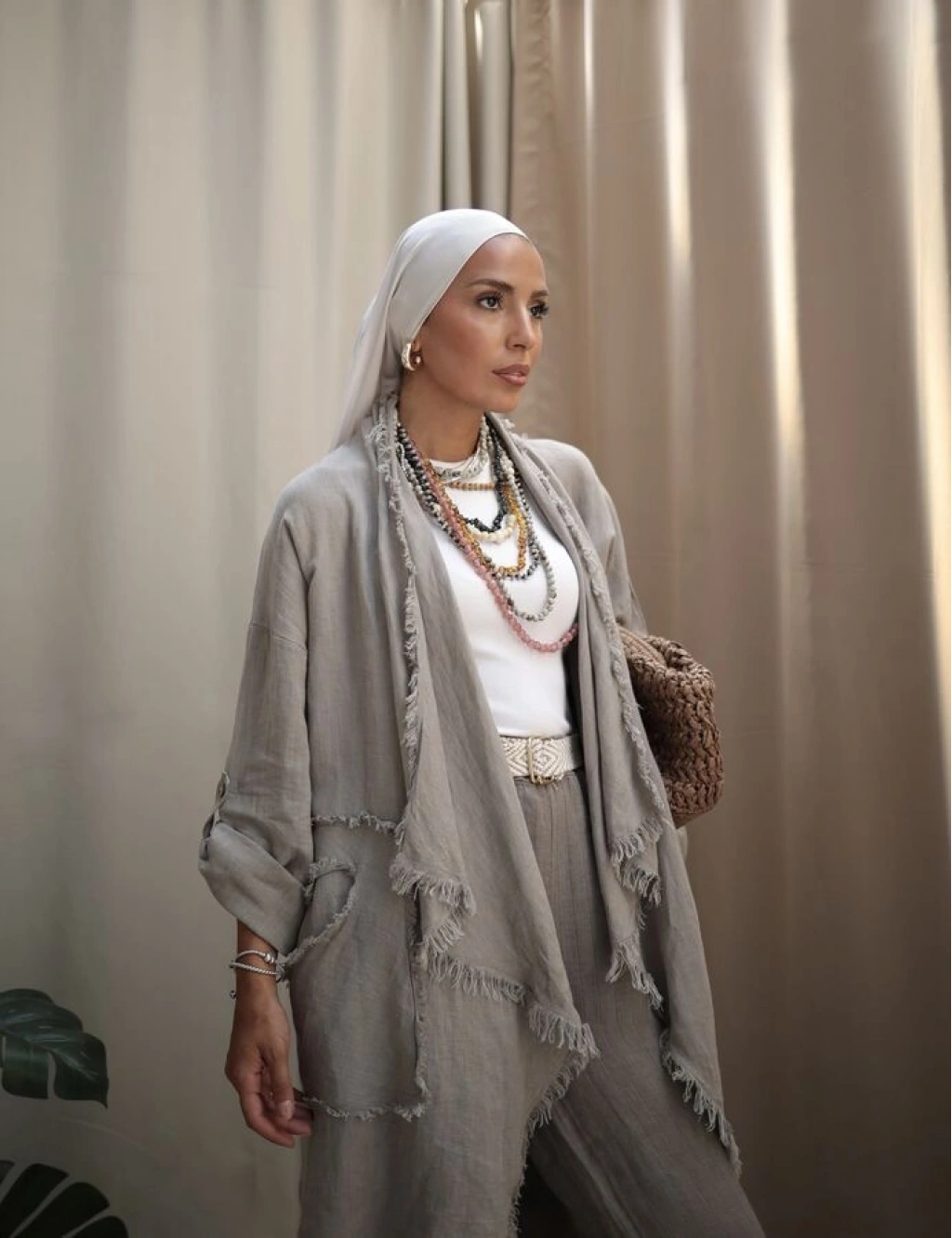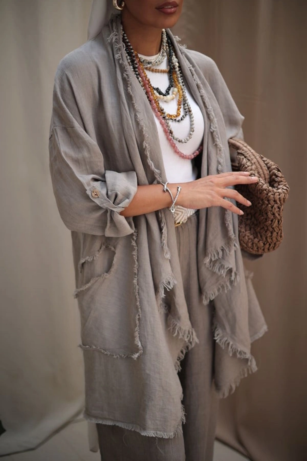 Kadın Keten Püsküllü Kısa Tunik-bulanık İnci