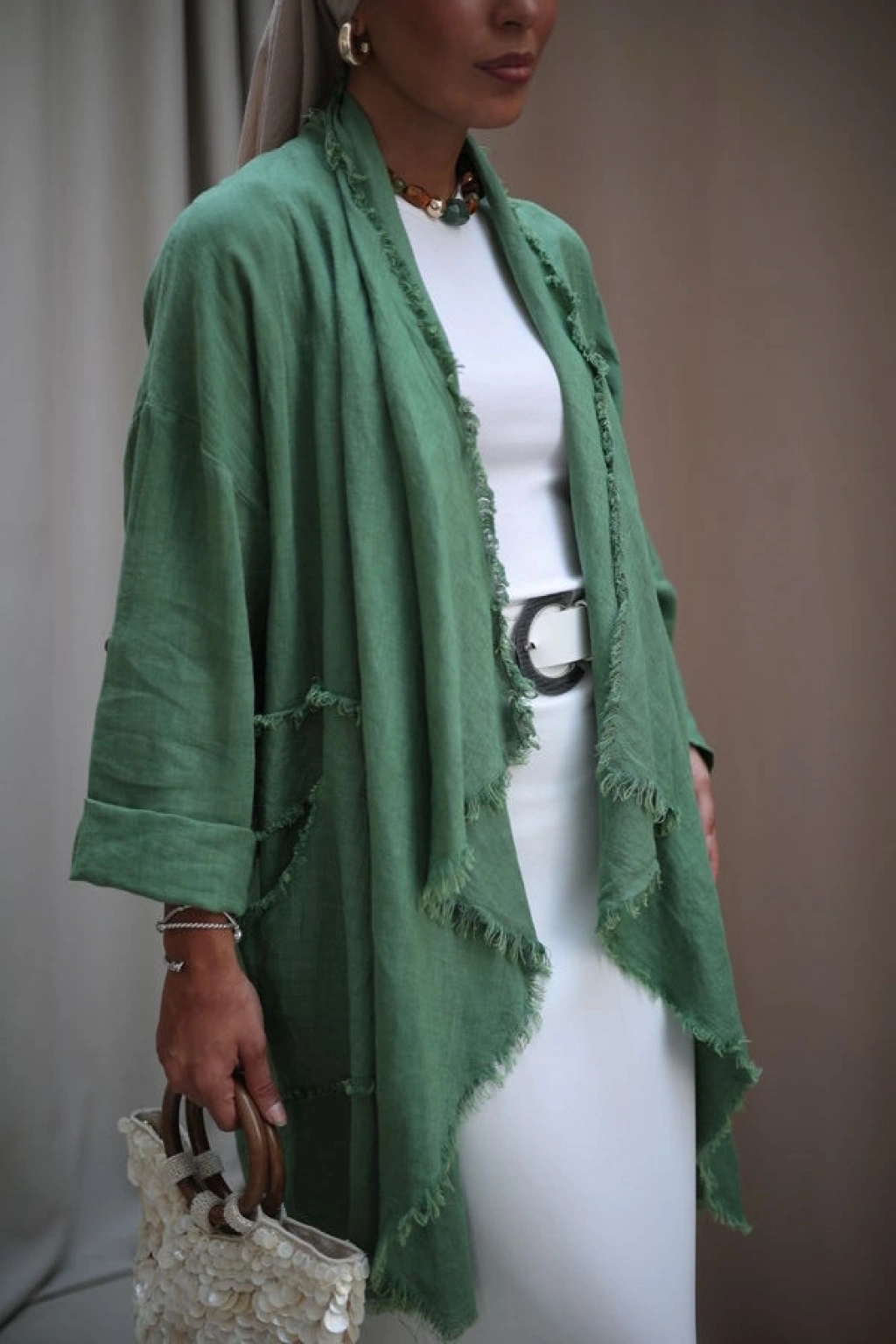 Kadın Keten Püsküllü Kısa Tunik-fesleğen
