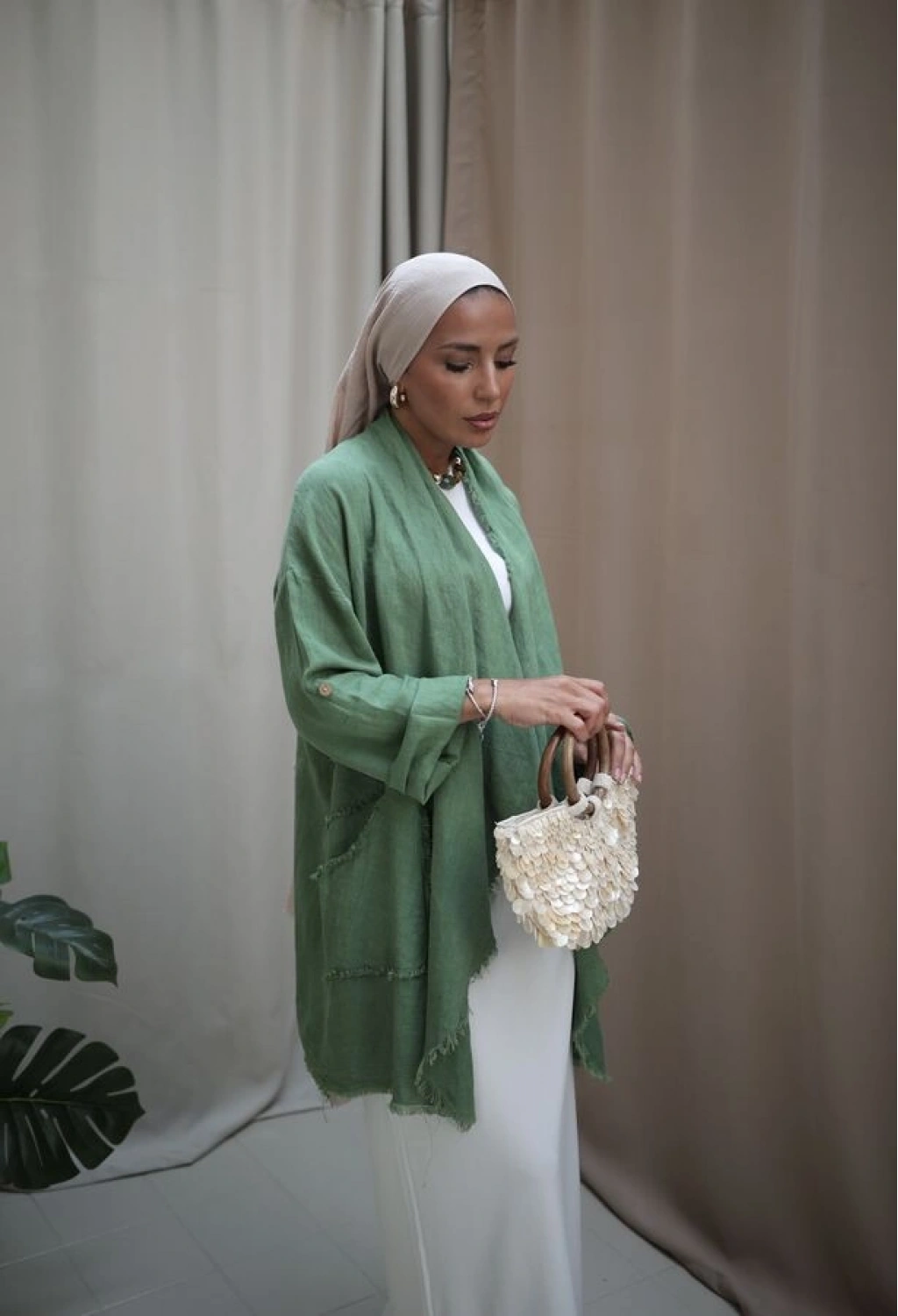 Kadın Çantalı Kimono Takım- Yağ Yeşil