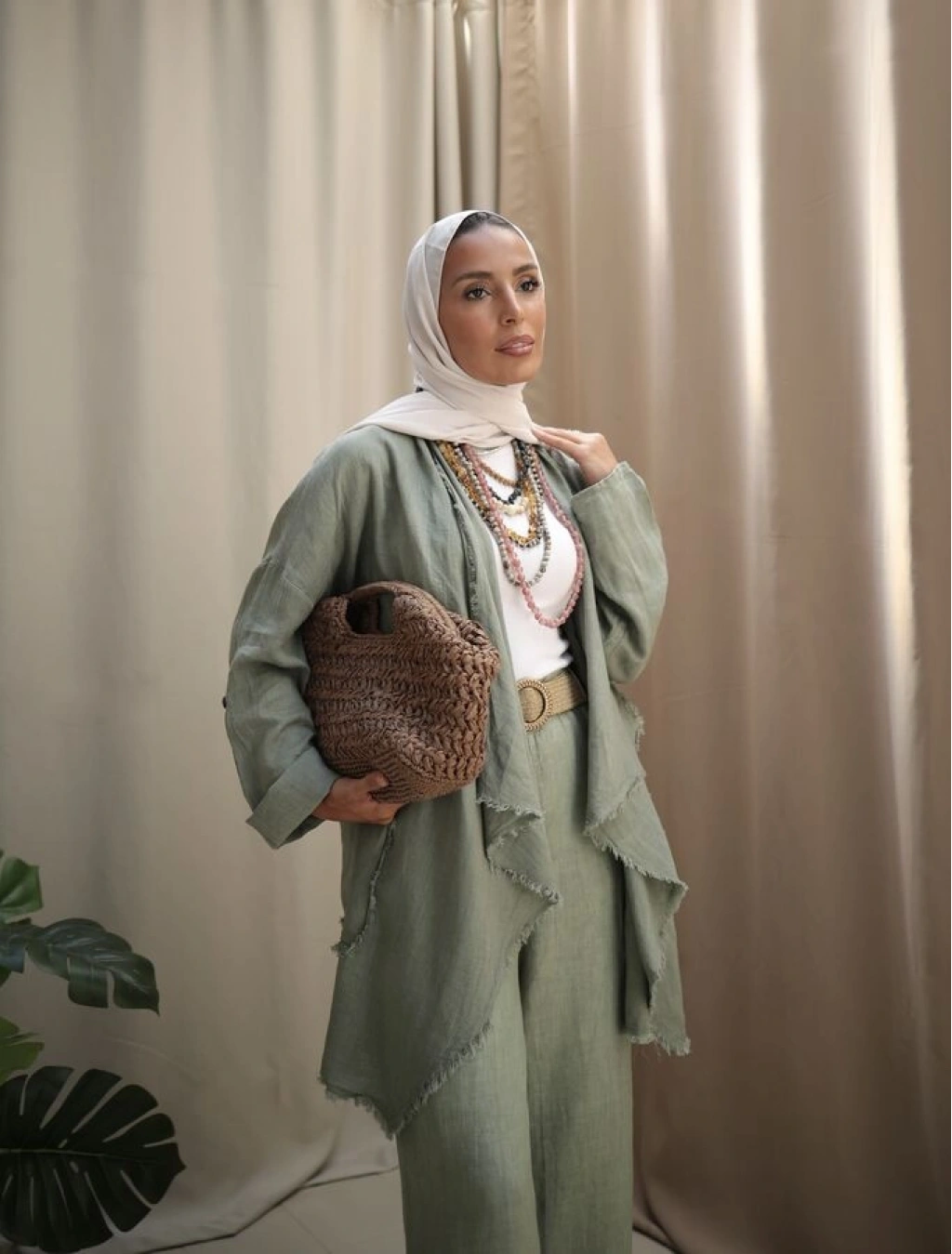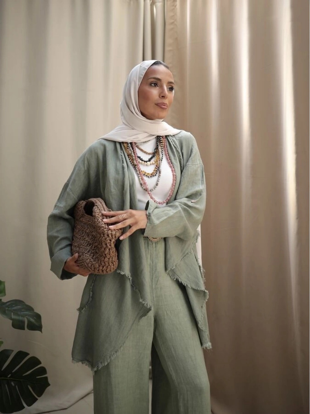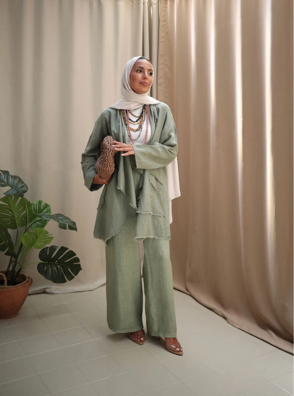 Kadın Çantalı Kimono Takım- Yağ Yeşil