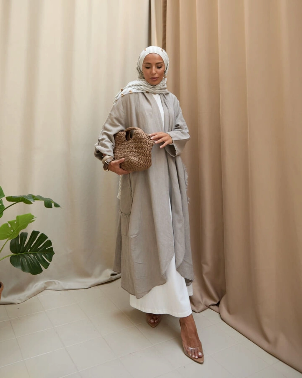 Kadın Keten Püsküllü Uzun Tunik-bulanık İnci