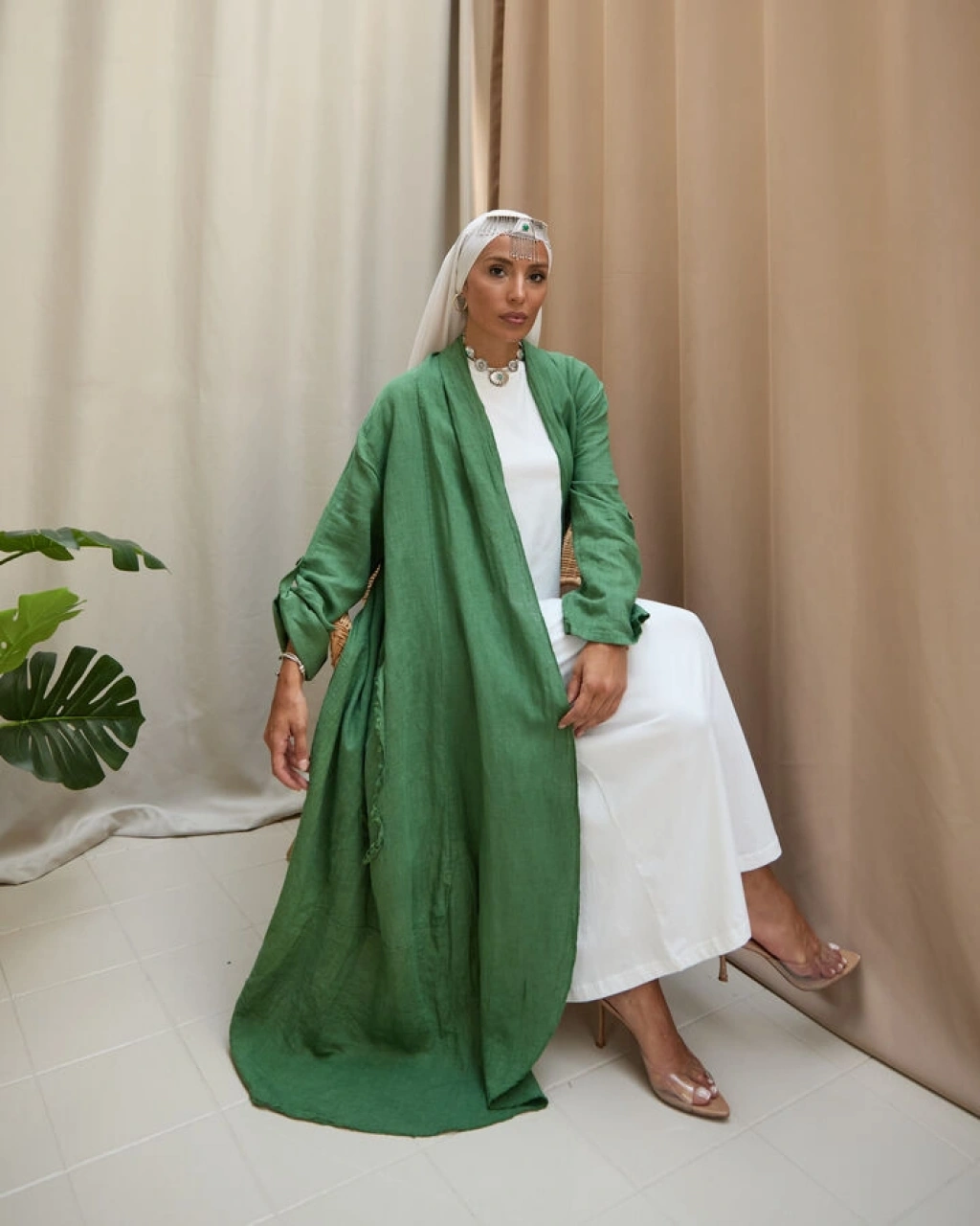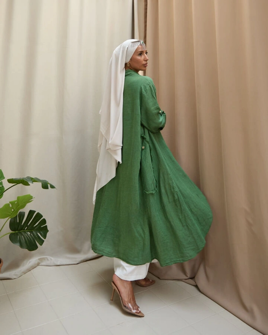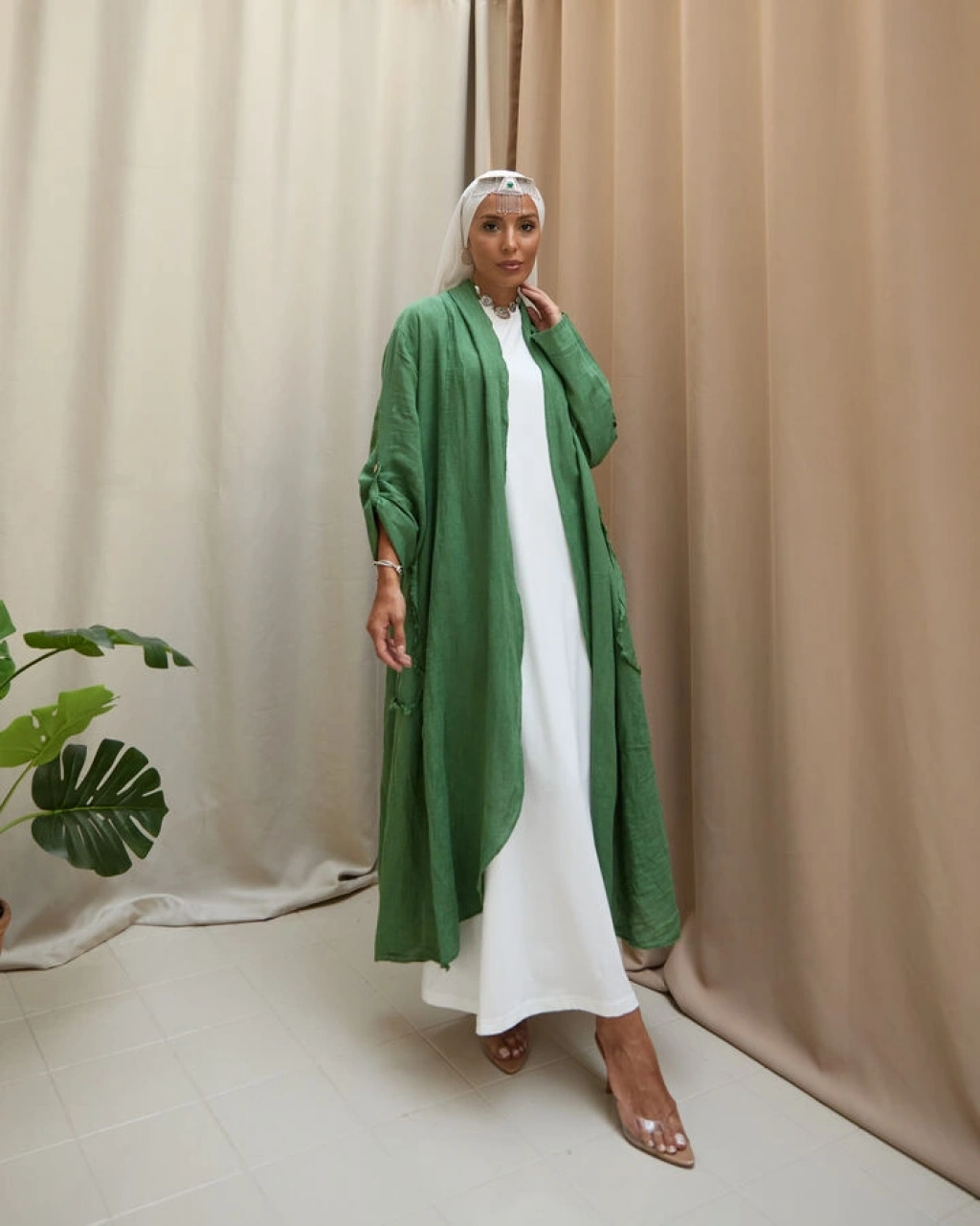 Kadın Keten Püsküllü Uzun Tunik-fesleğen