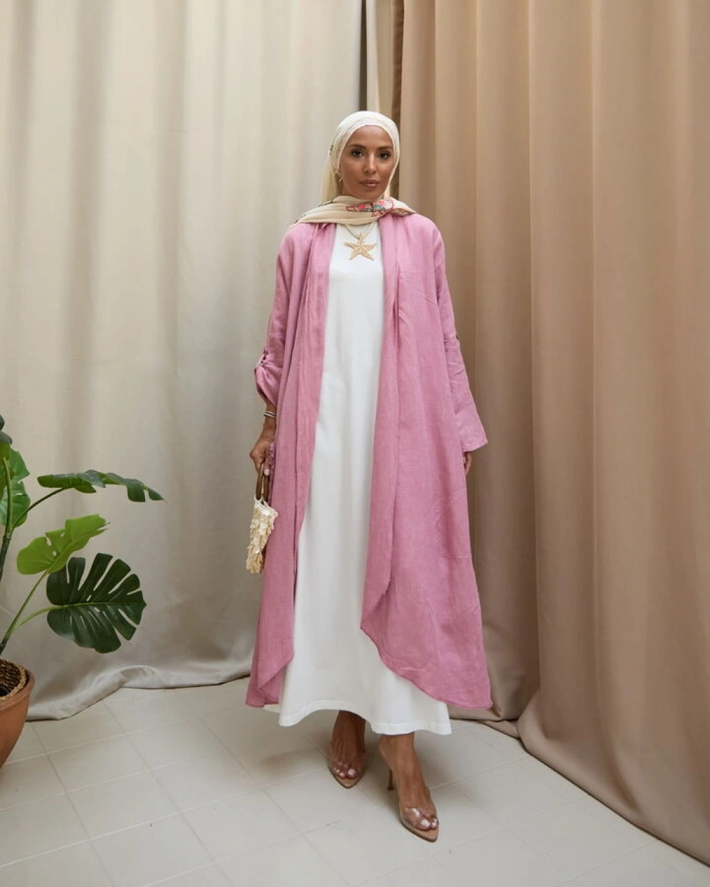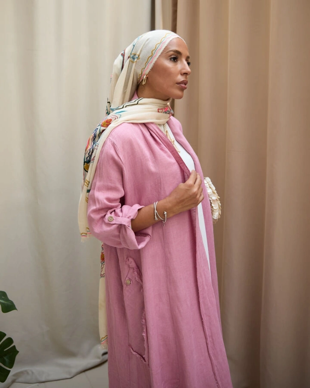 Kadın Keten Püsküllü Uzun Tunik- Pudra Pembe
