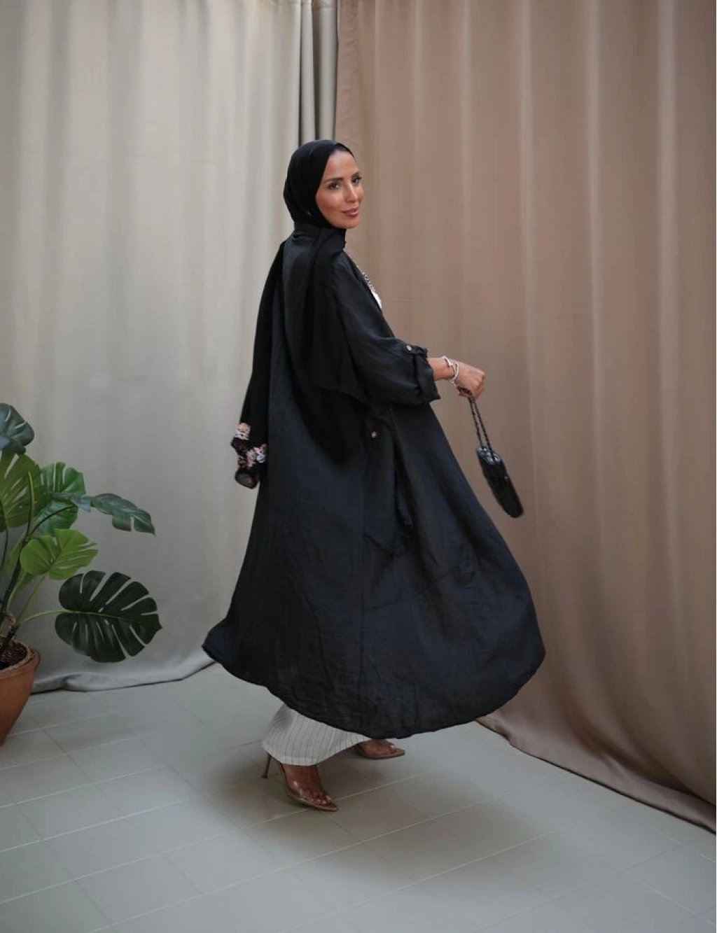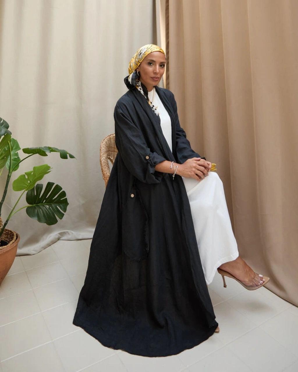 Kadın Keten Püsküllü Uzun Tunik-siyah