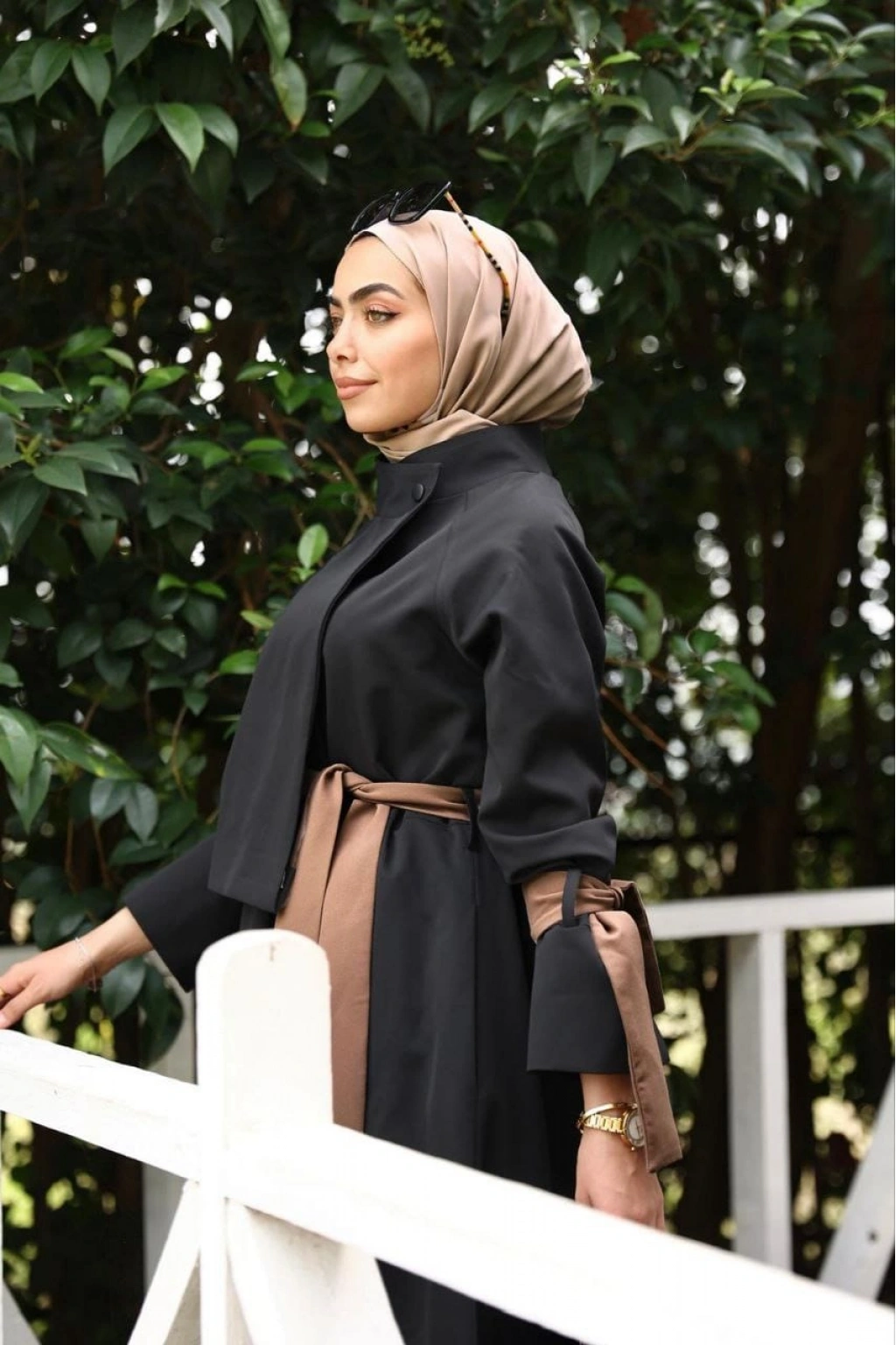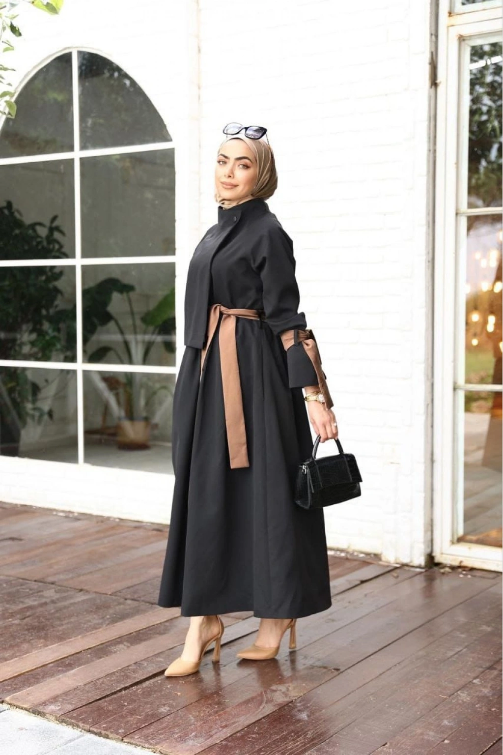 Cappuccino Kuşaklı Siyah Trenç Elbise