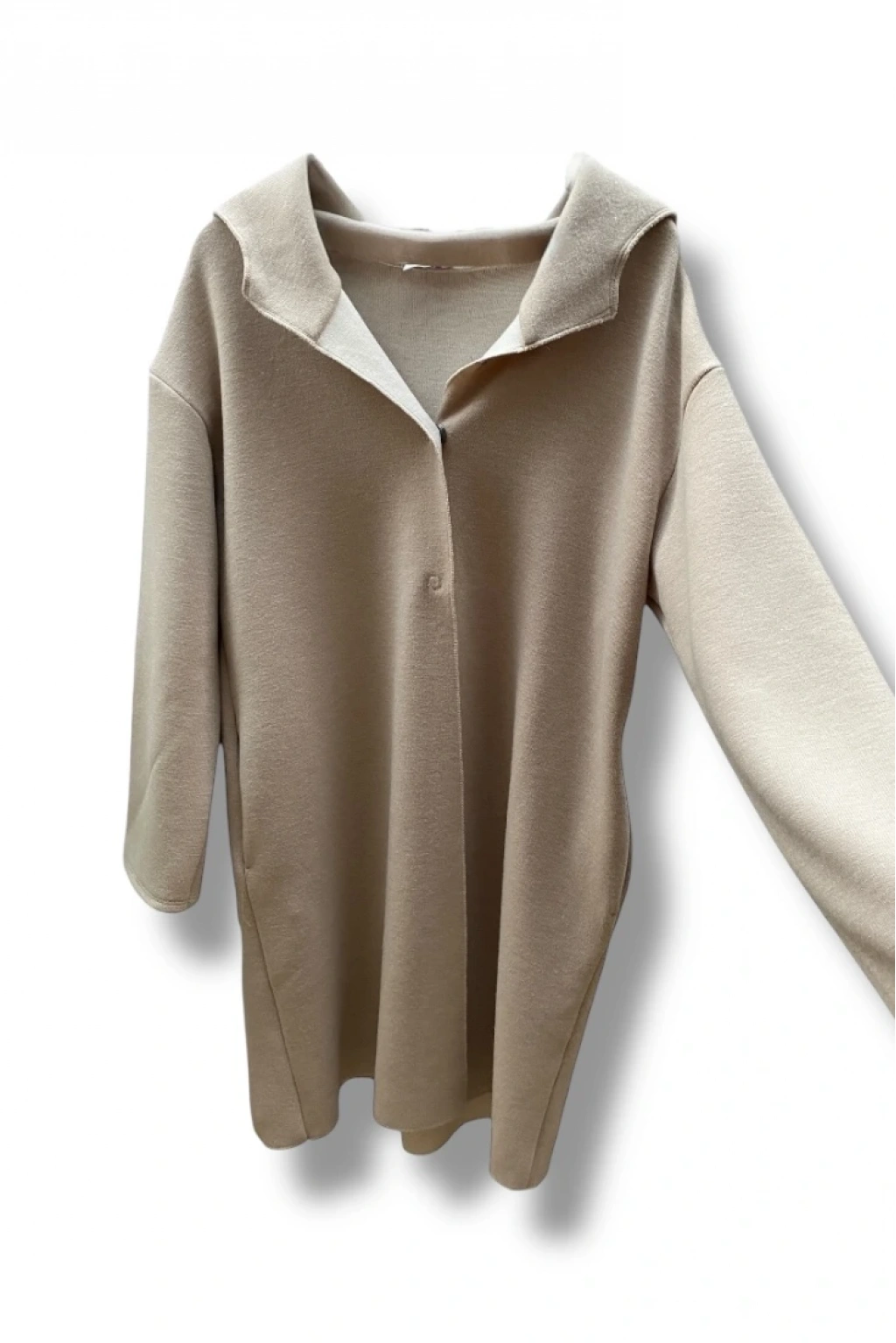 Kapüşonlu Bej Triko Cepli Sweat