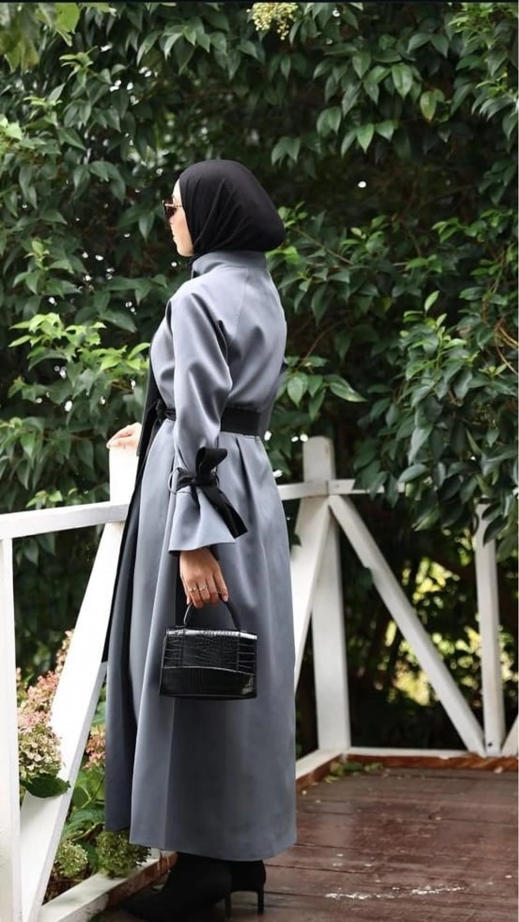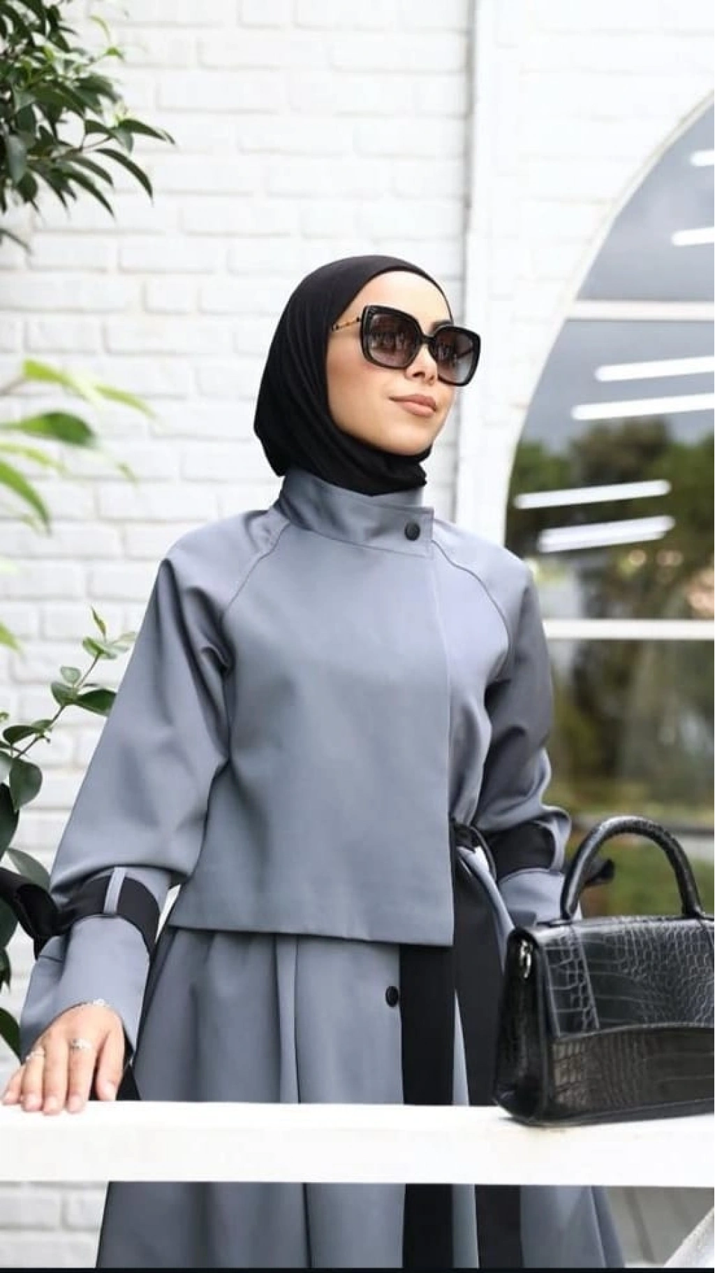 Kadın Yırtmaç Detaylı Elbise&Etek Takım-Gri