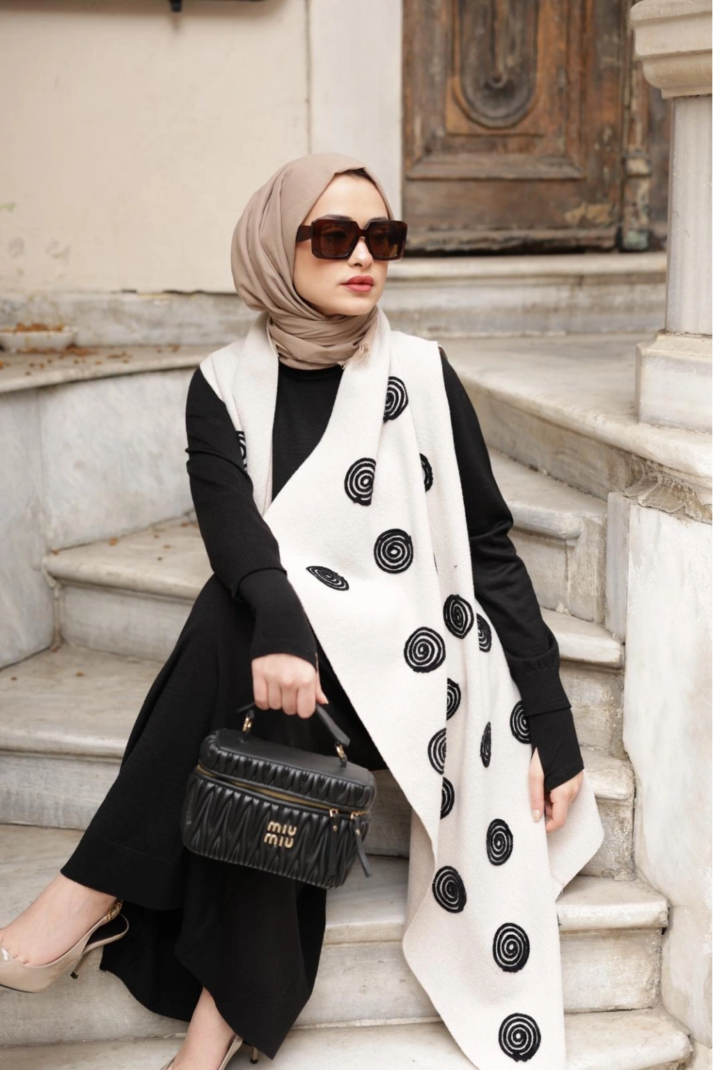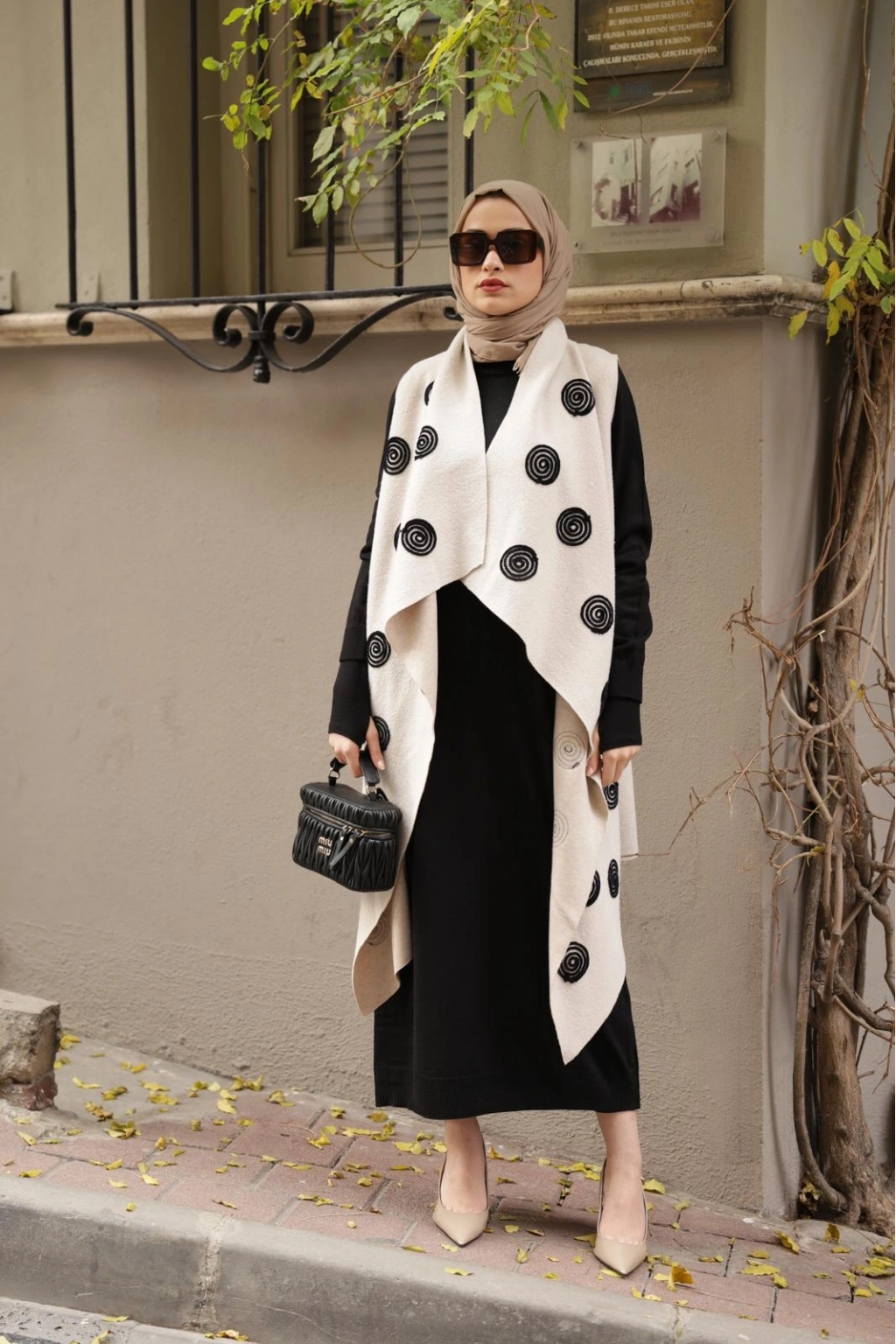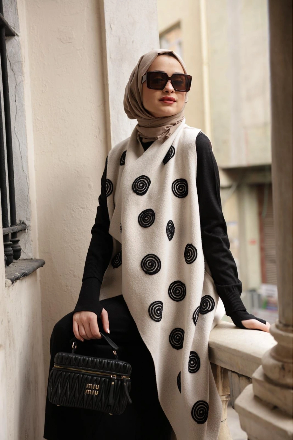 Süzene Siyah Daire Nakışlı Bej Yelek